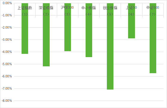 医药行业指数整体-5.71%,各个细分领域,化学制药-4.99%,生物制品-6.24%,医疗器械-3.55%,医药商业-5.10%,中药-3.80%,医疗服务-9.75%。