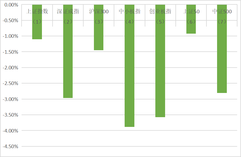 (7)中证500报6250.54收盘,-2.81%;
