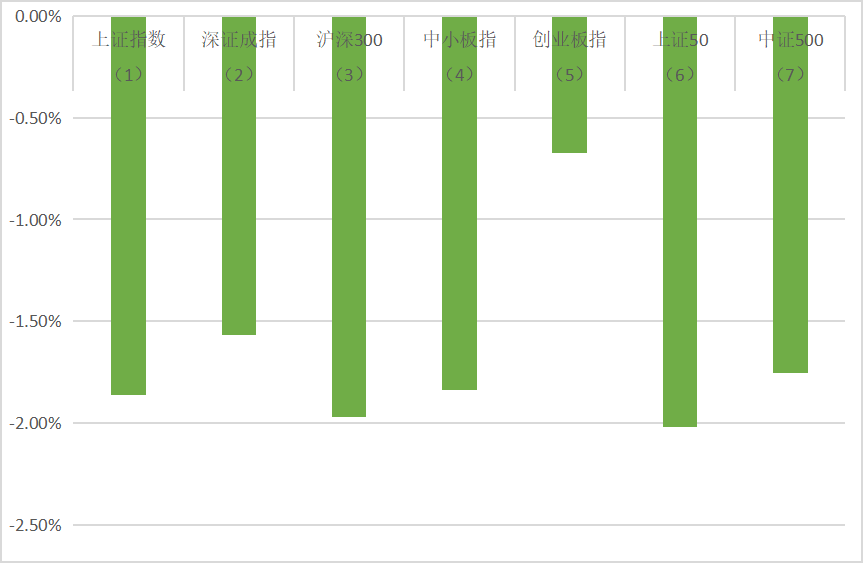 (7)中证500报6091.65收盘,-1.76%;